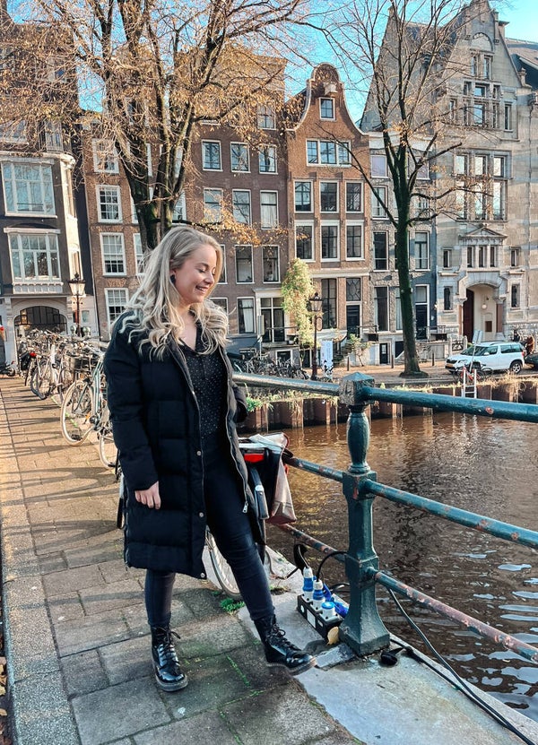 Maat: Britt draagt maatje M. Deze jas is iets korter dan de Beige versie.
