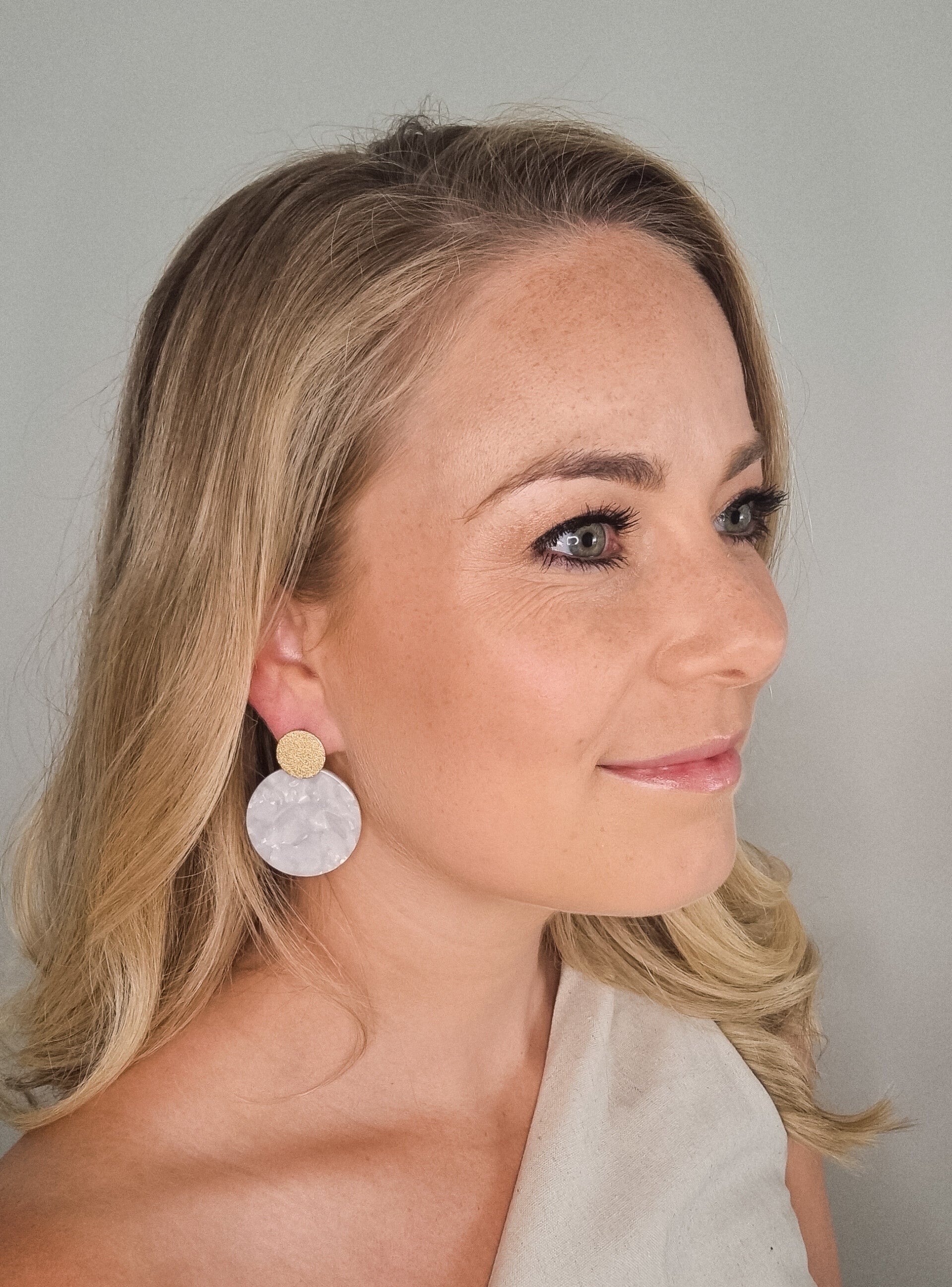 Wit, maar ook niet wit. Wit met een schakering in de hanger. Hierdoor krijgt de oorbel een unieke touch.