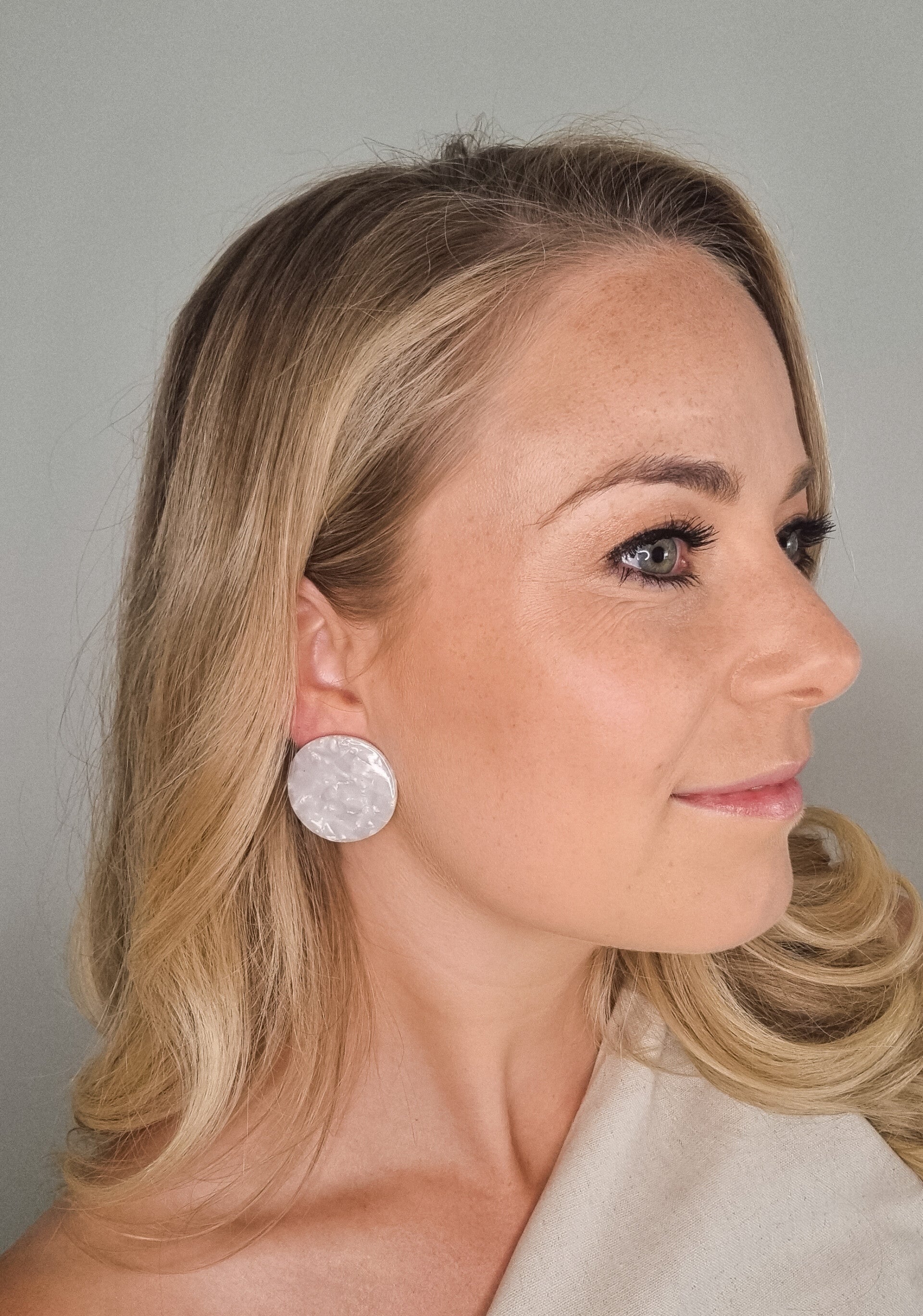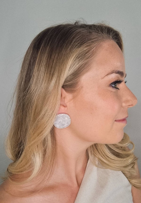 Wit, maar ook niet wit. Wit met een schakering in de hanger. Hierdoor krijgt de oorbel een unieke touch.