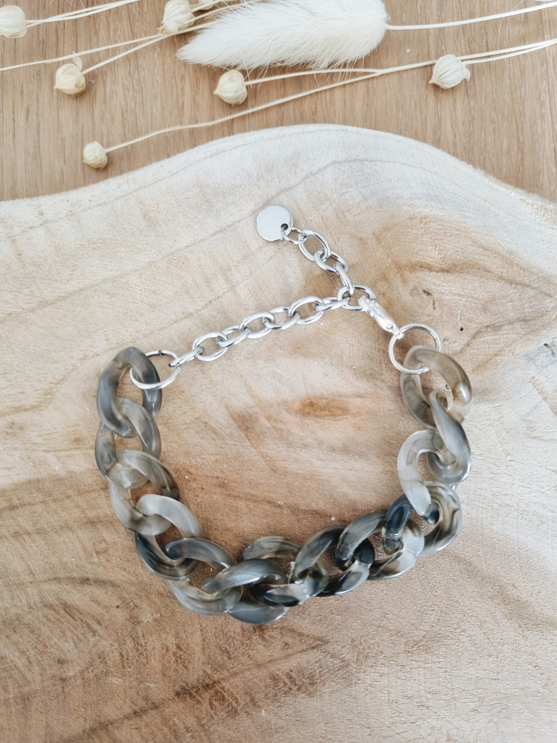 De schakels zijn gemaakt van acryl en hierdoor ook zeer licht om te dragen.