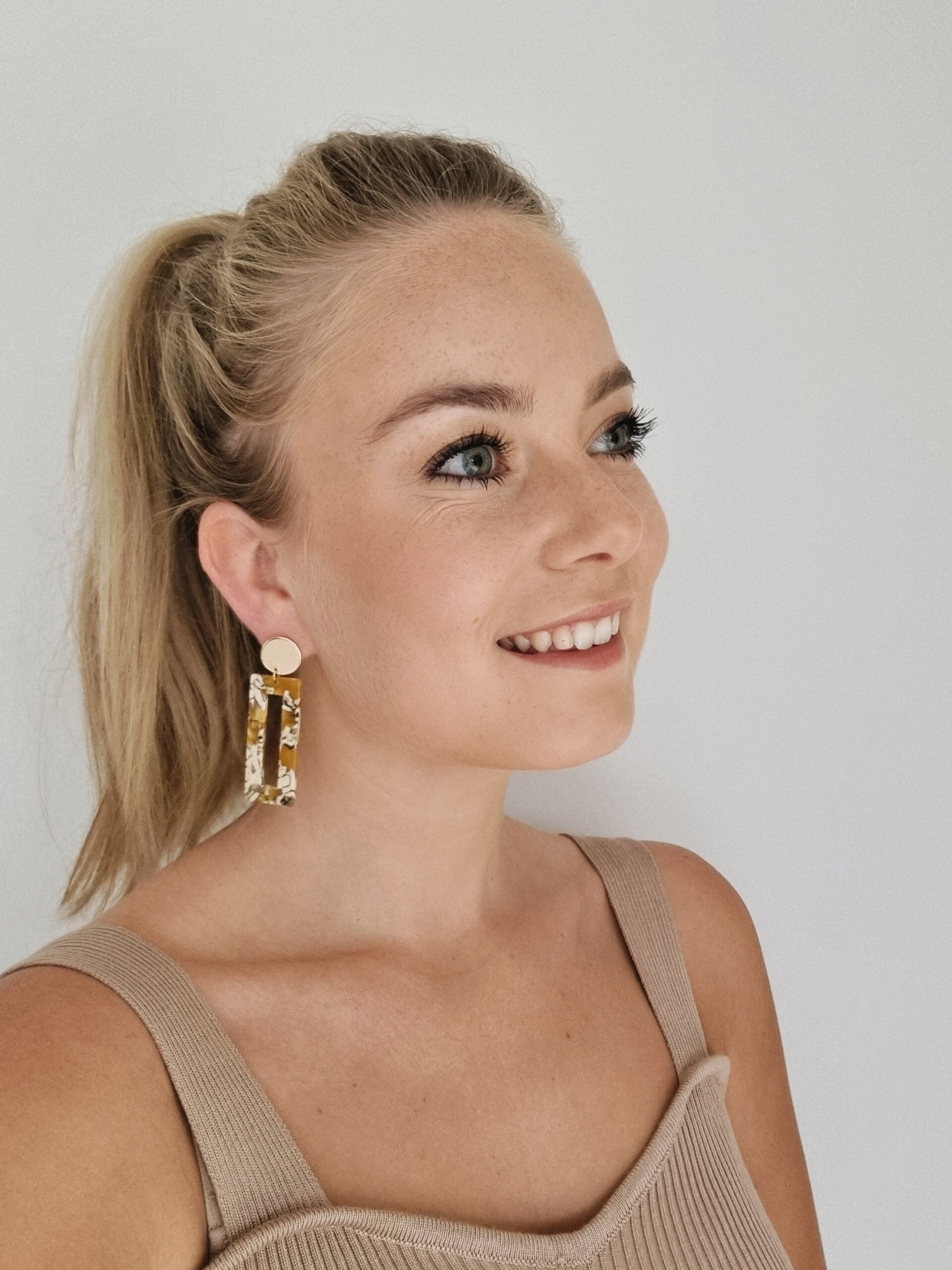 Zo mooi! Warm geel met beige en zwarte print. Afgewerkt met goud. Ik ben echt verliefd! Ik denk meteen aan een zonenbloemveld in het zuiden van Frankrijk.